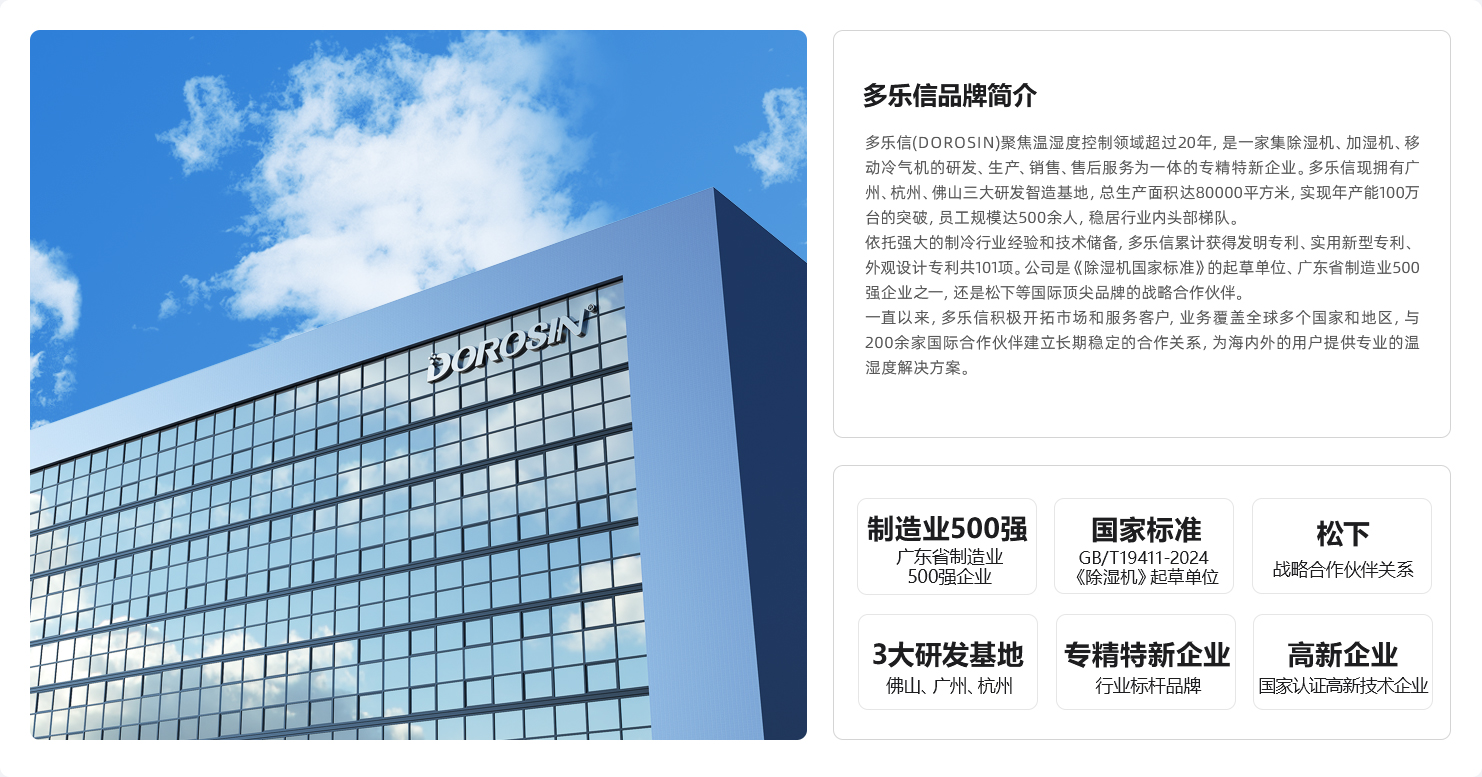 我們始終堅持,用精湛科技讓工業(yè)生產(chǎn)變得更輕松。一直以來,多樂信通過平衡環(huán)境溫度及濕度,幫助改善加工和生產(chǎn)條件, 營造舒適的工作和生活環(huán)境,創(chuàng)造理想的科研氣候條件,為用戶提供溫濕度空氣調(diào)節(jié)的整體解決方案。